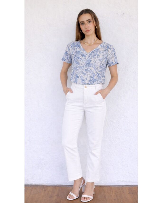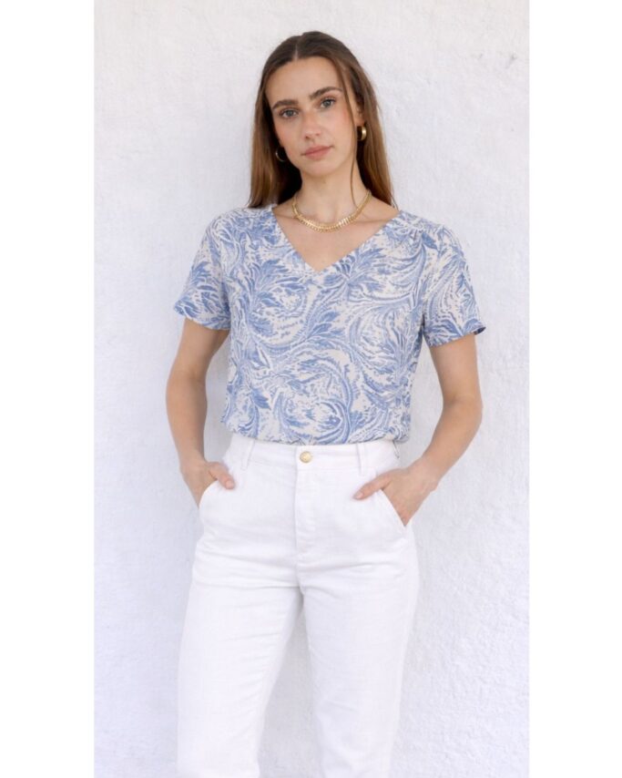 חולצת גילי היא הלהיט החדש שלך, במראה נקי ומתוחכם, מפתח וי מחמיא עם דיטייל עדין, בשילוב מכנסיים מחוייטים את מוכנה לעבודה וליציאה, ועם מכנסיים קצרים וגקט סופר שיק .