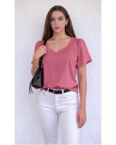 חולצת שני המושלמת, גזרה וי מיוחדת וקלאסית עם שרוול מחמיא ובדים קלילים נעימים וצבעוניים,