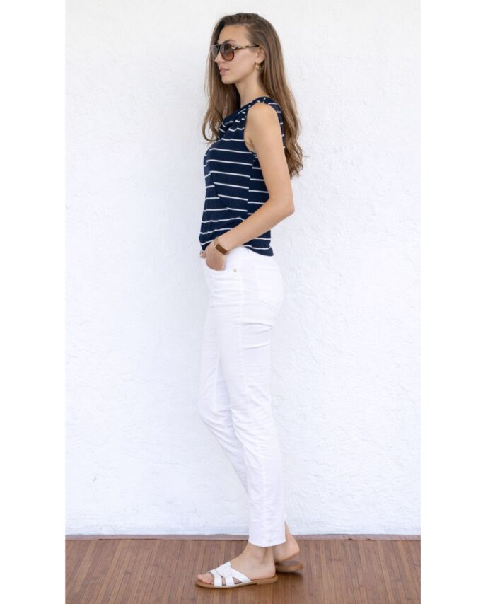 בשילוב מכנסיים מחוייטים את מוכנה לעבודה, ועם גינס לבן ישר לחופשה …