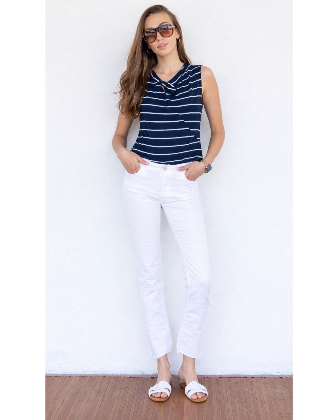 בשילוב מכנסיים מחוייטים את מוכנה לעבודה, ועם גינס לבן ישר לחופשה …