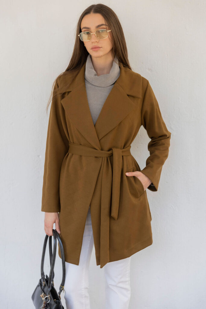 בד גרזי עבה ומחמם אבל הכי נעים שיש, חגורה כיסים