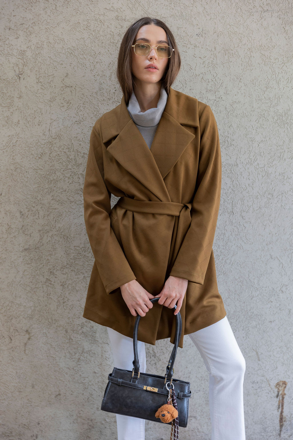 בד גרזי עבה ומחמם אבל הכי נעים שיש, חגורה כיסים